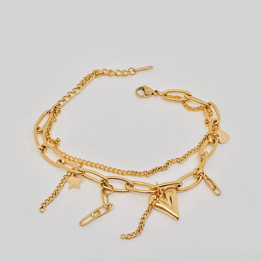 Star Heart Charm 18K Gold Plated Double Chain Bracelet