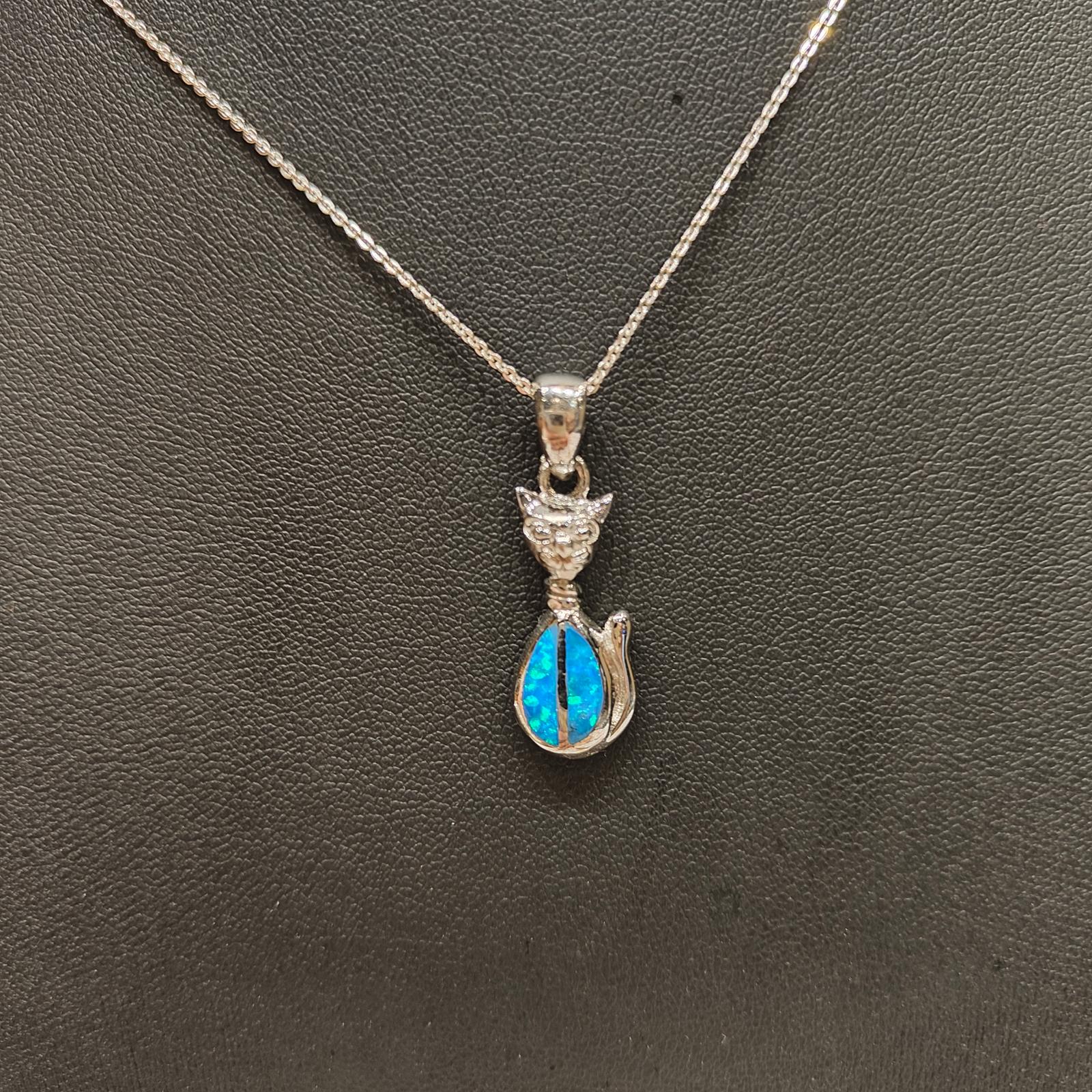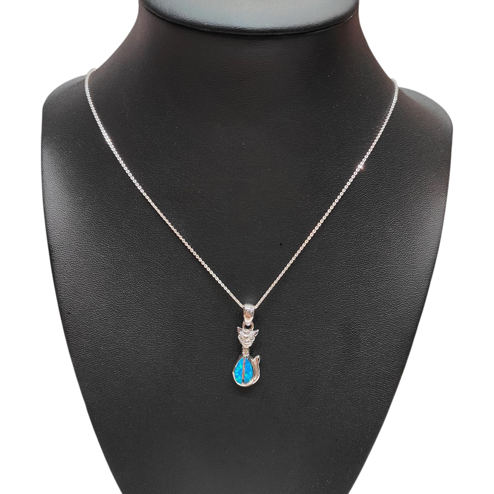 925 SILVER BLUE OPAL EGYPTIAN CAT PENDANT NECKLACE