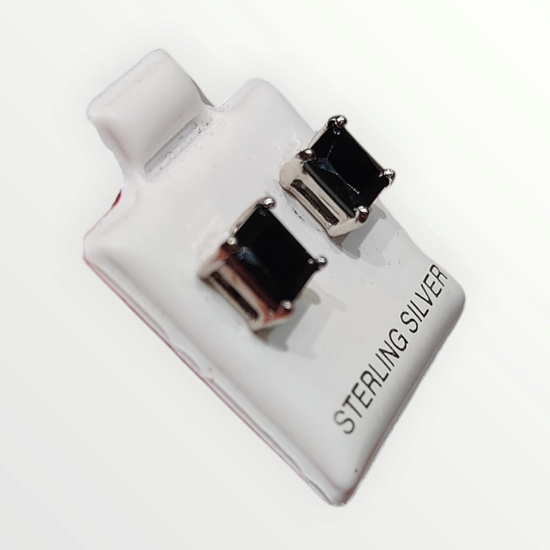 Black Squared Shape Big Stud Earrings 925 Sterling Silver