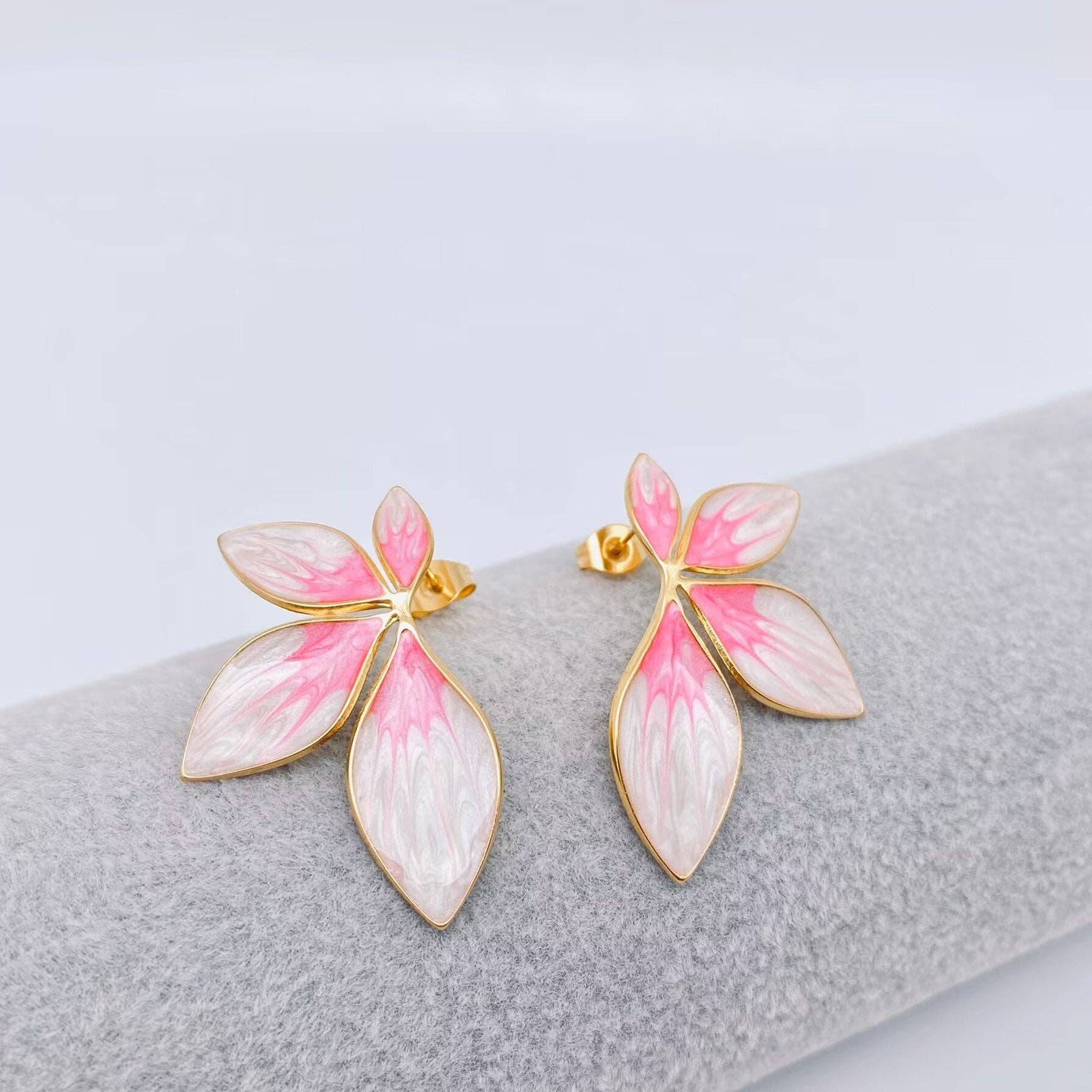 Colored Enamel Leaf Shape Stainless Steel Stud Earrings
