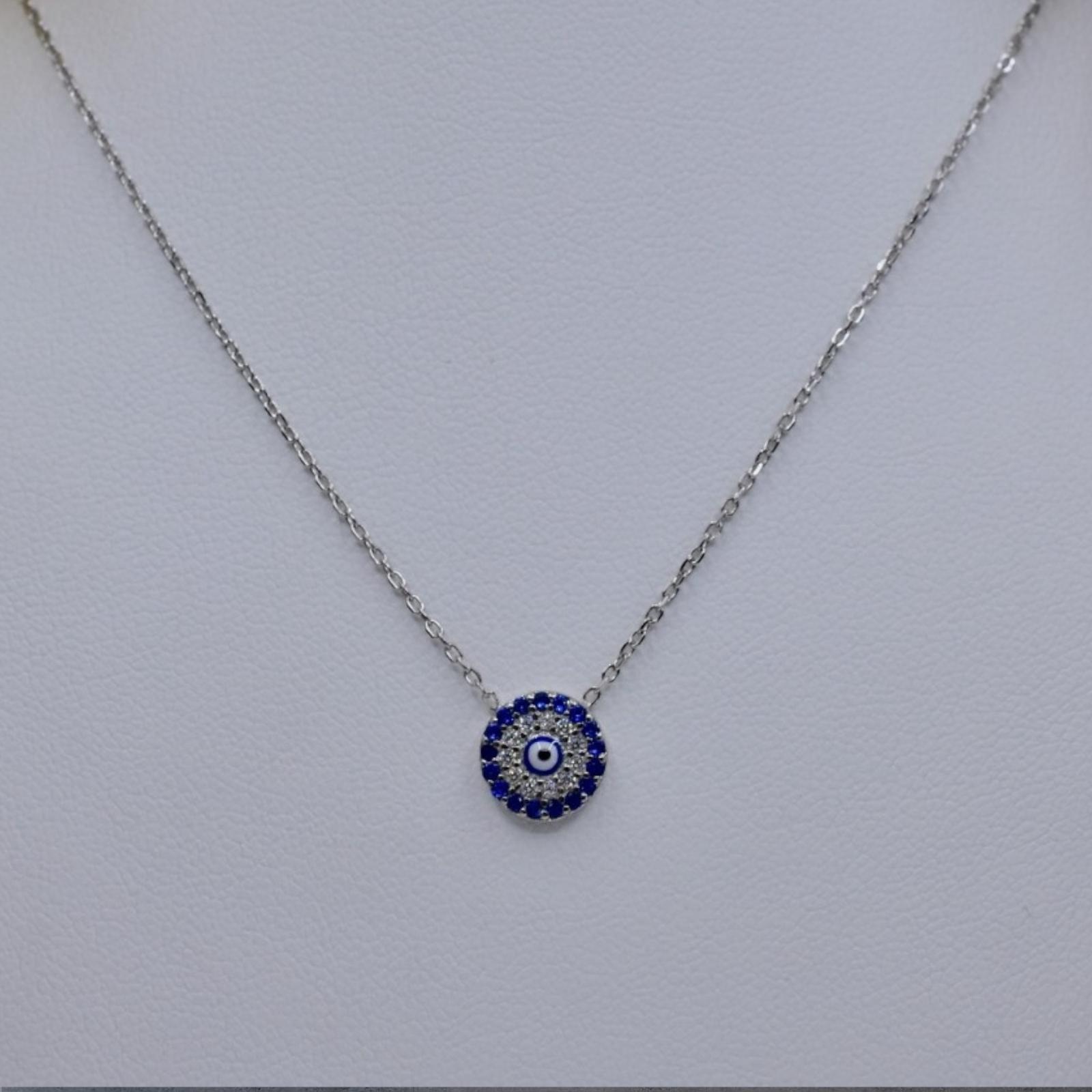 925 SILVER EVIL EYE STUDDED PENDANT PROTECTION NECKLACE