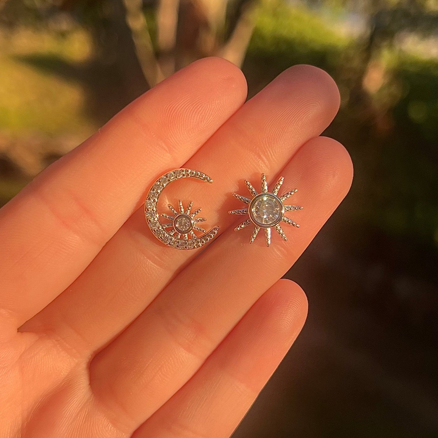 Day & Night 925 Silver Sun & Moon Stud Earrings